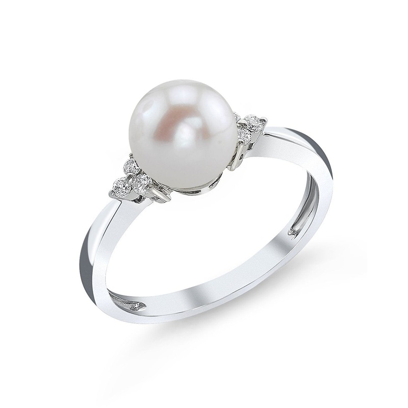 This exquisite ring features a lustrous AAAA quality 7-8mm white freshwater pearl, which gleams beautifully on your finger. Enhanced with shimmering SI clarity diamonds, it rests elegantly on a 14K gold band. You'll find that this piece catches the light p