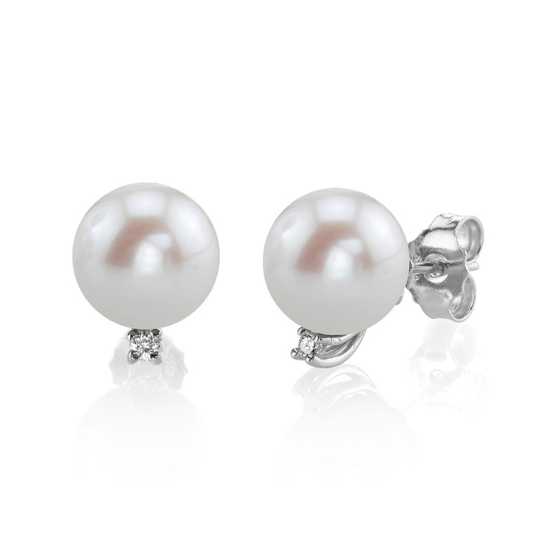 These elegant stud earrings showcase two stunning 7mm white freshwater pearls. Each pearl has been handpicked for its exceptional luster and smooth surface. Mounted on brilliant 14K gold, they also feature a .03 carat SI quality diamond stud. You’ll appreciate how effortlessly these earrings enhance your everyday look or complement your finest attire.