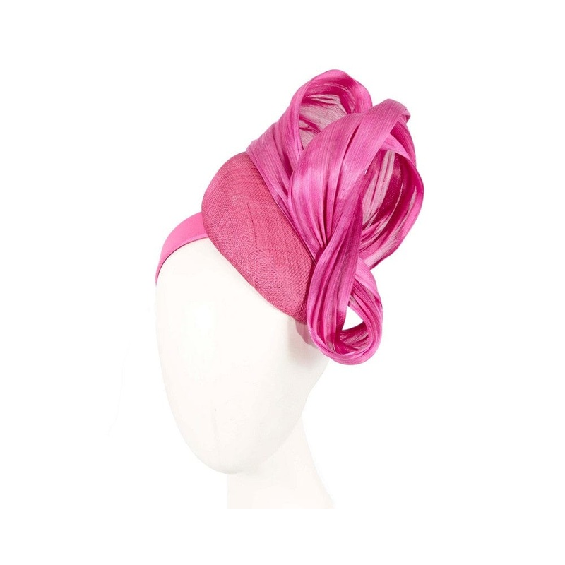 Fuchsia pillbox fascinator with silk abaca bow by Fillies Collection