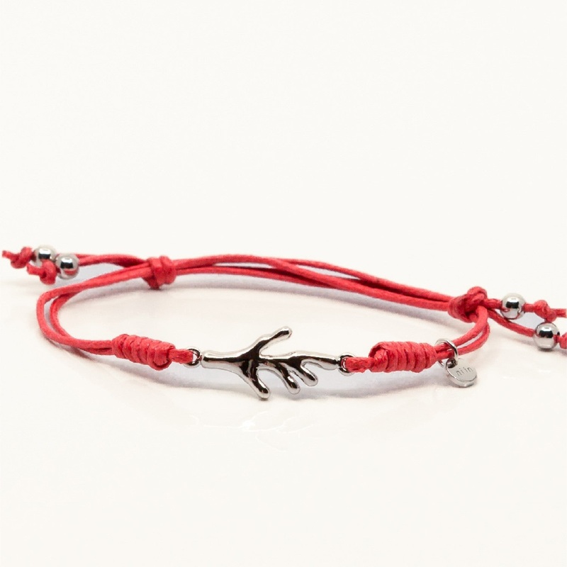 TheGaia Bracelet – Coralis a wax cord bracelet with a rhodium-plated silver pendant, addressing the concern for coral.