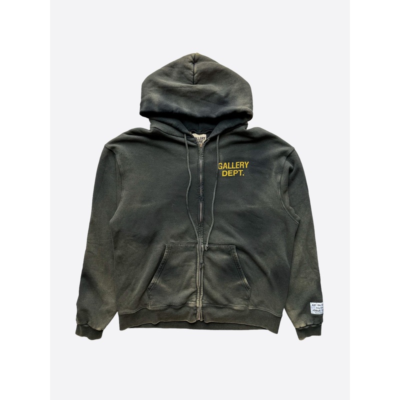 A246485294Gallery Dept Black Sunfaded Logo Zip Up Hoodie