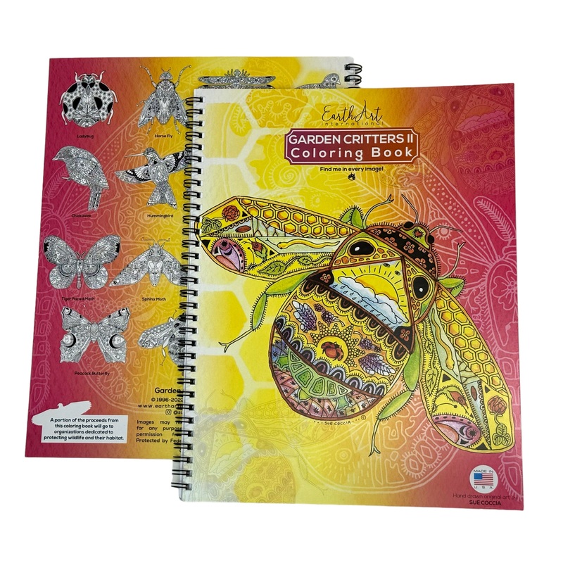 Each book contains 15 Black & white pen & ink animals on 80# paper. Use watercolors, felt pens, color pencils or crayons. Critters inside: Ladybug, Horse Fly, Dragonfly II, Pigeon, Chickadee, Hummingbird, Steller's Jay, Henry's Chicken, Tiger Faced Moth, S