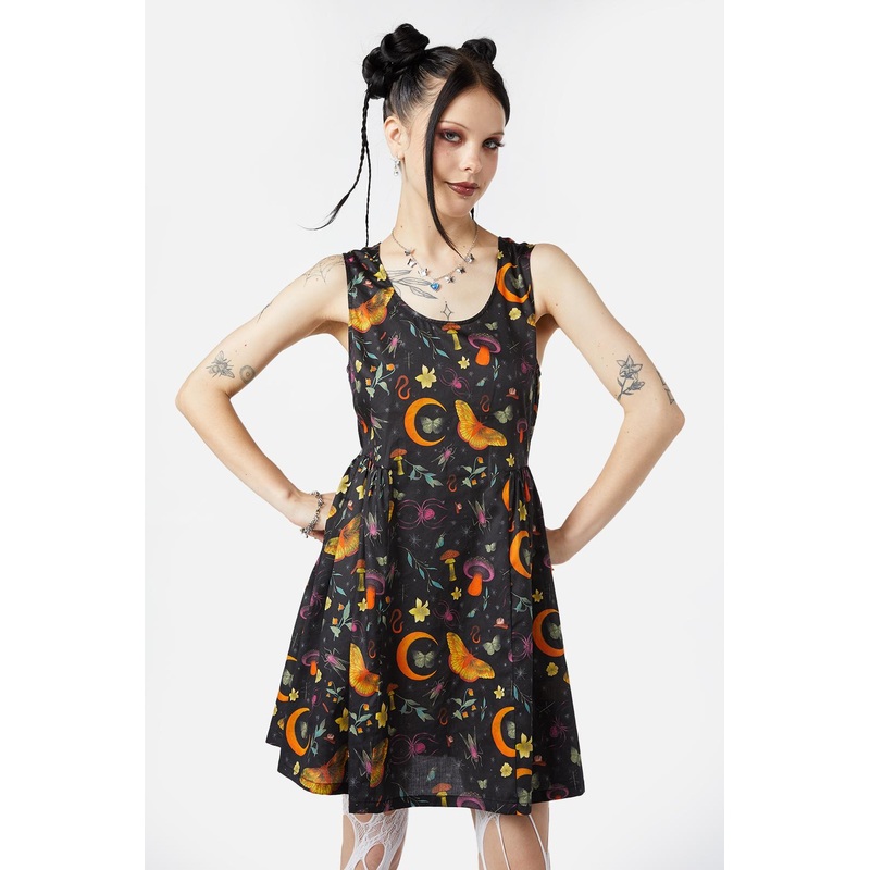 Printed Dress -Features ‘Garden Party’ All Over Artwork -Classic Fit And Flare Cut -Zipper Opening -Round Neckline -Made From Cotton Sateen -Available In Black