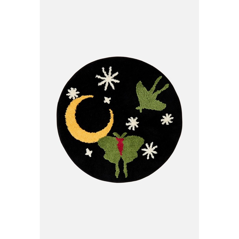 Garden Party Rug – A Black Friday exclusive – Black with multi coloured design – Moon, moth and stars – Non slip base – Approximately 80cm in size
