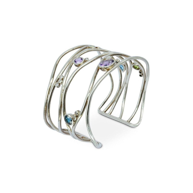 Gem-Set Cuff Bangle Six Strand (Wide)