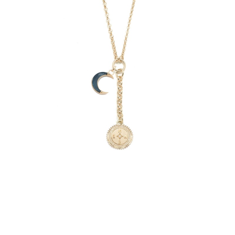 Handcrafted in 18 karat Yellow Gold, this Small Mixed Belcher Extension Chain Necklace symbolizes Internal Compass. The compass is comprised of the four major cardinal directions; North, South, East & West. The directions are in mirror image as a metaphor that its only with self-reflection can each of us find what has heart & meaning in life and then determine the next step towards it. When the wearer looks in the mirror then the right direction can be found. Complimented with our gemstone crescent moon, we are reminded every day is a new day to work towards truth and balance. We have a choice regarding what kind of energy we want to put out there in the world.