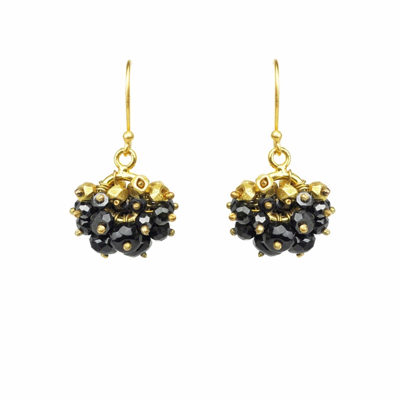 Gena Myint Black Spinel Gold Nugget Cluster Vermeil Earrings
