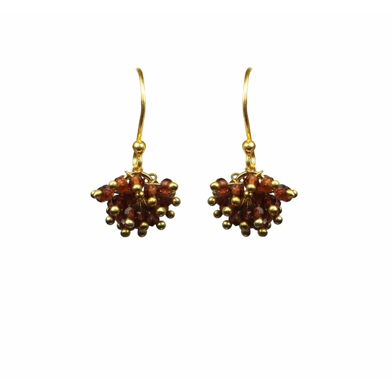 Garnet.18kt vermeil, gold plated over sterling silver earwires.1 inch entire drop length.