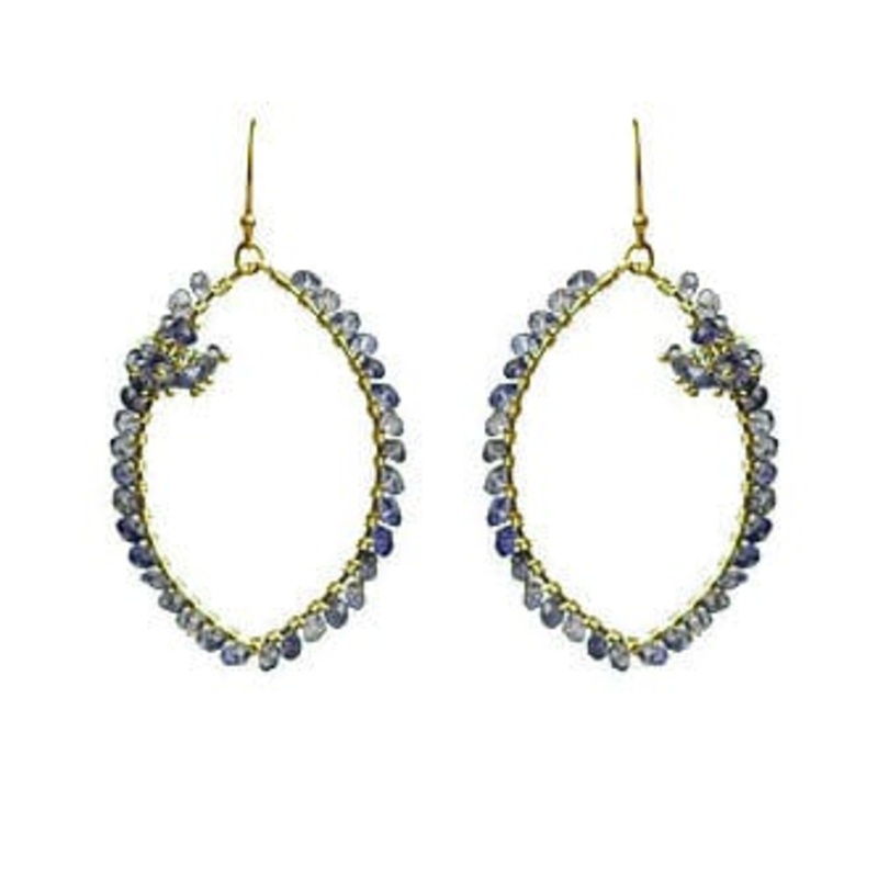 Iolite.18kt vermeil, gold plated over sterling silver earwires.2 inch drop length, 1 1/4 inch width.