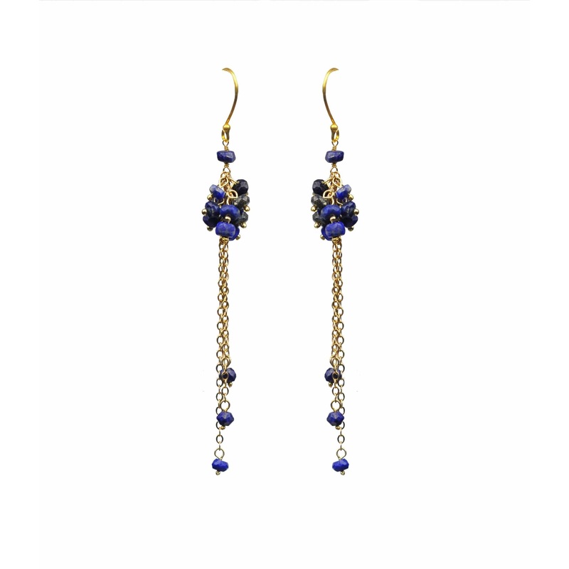 Lapis lazuli.18kt gold-fill chain.18kt vermeil, gold plate over sterling silver earwires.3 1/2 inch total drop length.