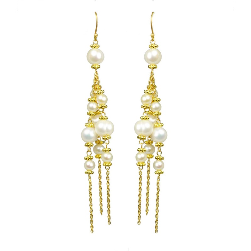 Freshwater pearl.18kt gold fill chain.18kt vermeil, gold plate over sterling silver earwires.3 3/4 inch total drop length.