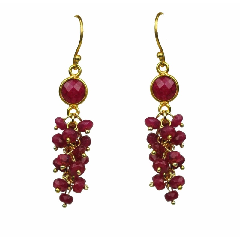 Ruby bezel.18kt vermeil, gold plate over sterling silver earwires.2 inch drop length.