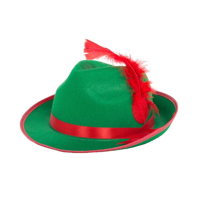 Item Includes:Hat.Fit and Sizing:One size fits most.Fits heads up to 57cm / 22.5in circumference.Oktoberfest!This German Mens Hat is a green felt German style hat made from sturdy lightweight felt with red trim, band and feather. A great Oktoberfest access