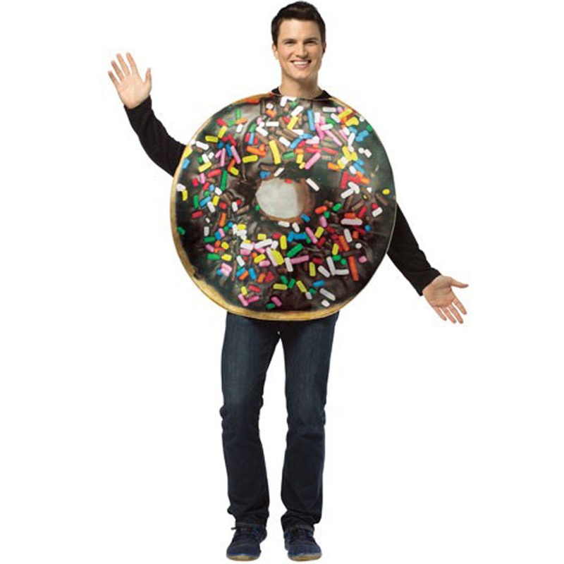SweetSprinkle on some deliciousness by putting on our Men's Get Real Doughnut Costume! Wear this one piece suit, and your body will look like it's made of a doughnut covered with chocolate glaze and rainbow sprinkles. Everyone will be salivating as you wal