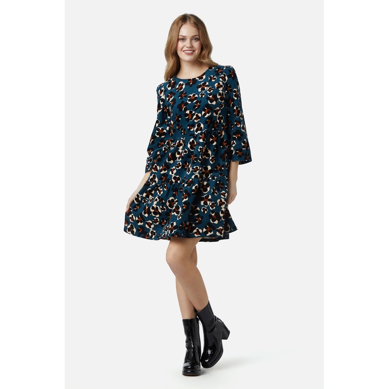 cotton corduroy floral smock dress- a super cozy & very fun leopard meets flower print - mid weight cotton cord fabric - regular fit bodice - length sleeves - gathered skirt - dress length falls to the knee - available in rose and green Coco wears a size 8