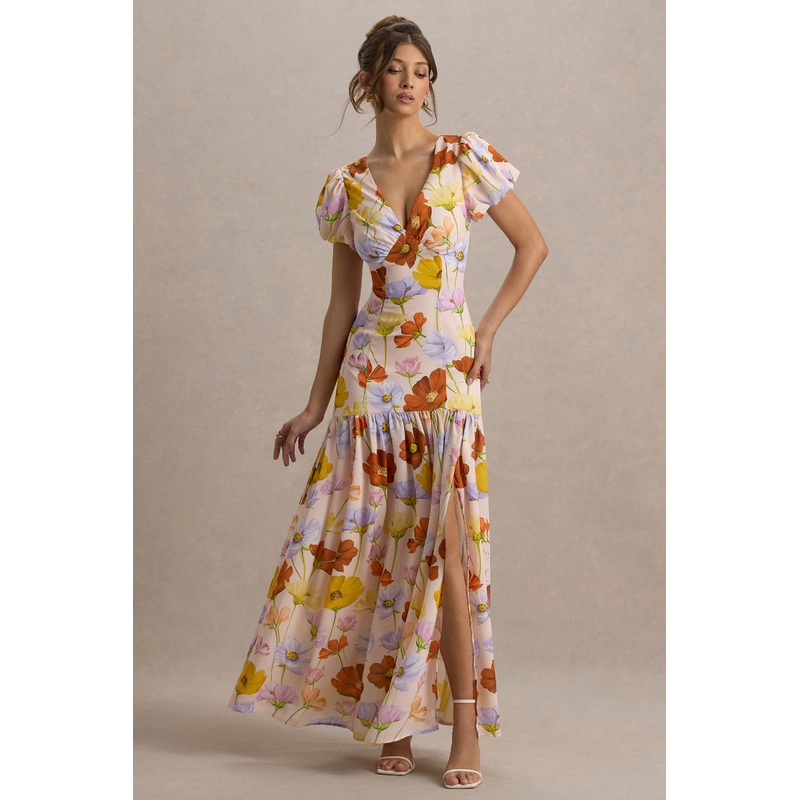 The romantic piece your wardrobe is missing, Ginny, has arrived. Designed in a striking bright floral print of our premium stretch woven, this maxi is a seamless blend of elegance and drama. The plunge neckline adds a daring edge to this sophisticated silhouette, that is balanced by the statement puff sleeves. Featuring a drop waist that enhances your silhouette, ensuring you are flattered from all angles, and a gathered volume skirt that adds just the right amount of movement. For dressed up occasions this season, feel your best in Ginny, styled with a chic up-do to complete the look.