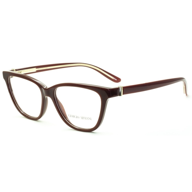 GIORGIO ARMANI Full Rim Frames - 100% Authentic AR 7263 5955 Armani Sustainability Values Gloss burgundy acetate frames and arms Gloss transparent acetate inner arms Polished gold metal hinges Brand new - Never been worn Lens Width = 53mm Frame Height = 44