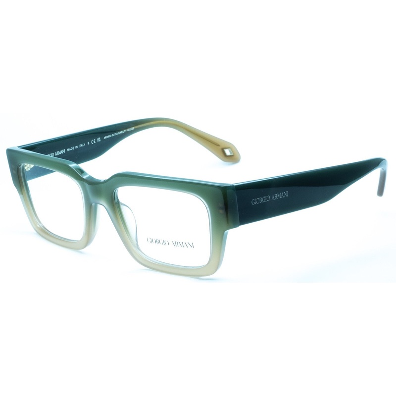 GIORGIO ARMANI Full Rim Frames 100% Authentic - AR7243-U 5982 Armani Sustainability Values Gloss transparent faded green brown acetate frames and arms inlaid with GA logos Brand new - Never been worn Lens Width = 53mm Frame Height = 44.5mm Bridge = 19mm Te