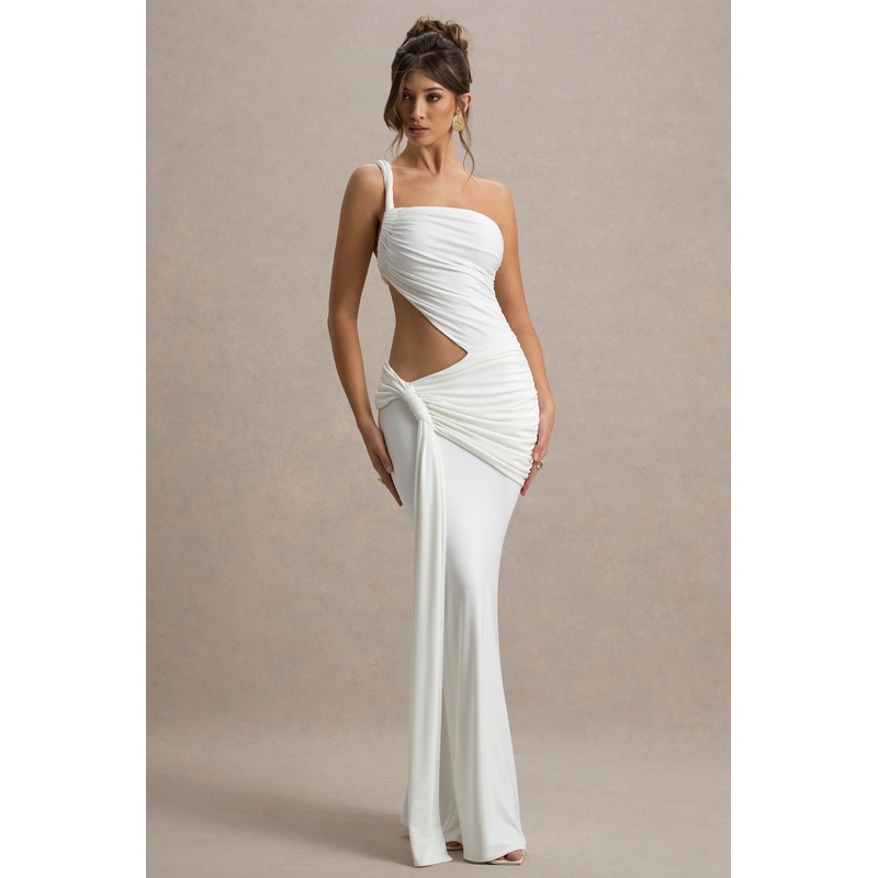 Create a lasting impression inGiovanna. Cut in our premium jersey in a striking white hue, this maxi features a mesmerising asymmetric neckline and intricate cut out details. Style this immaculate floor sweeper with stilettos for the perfect holiday dinner