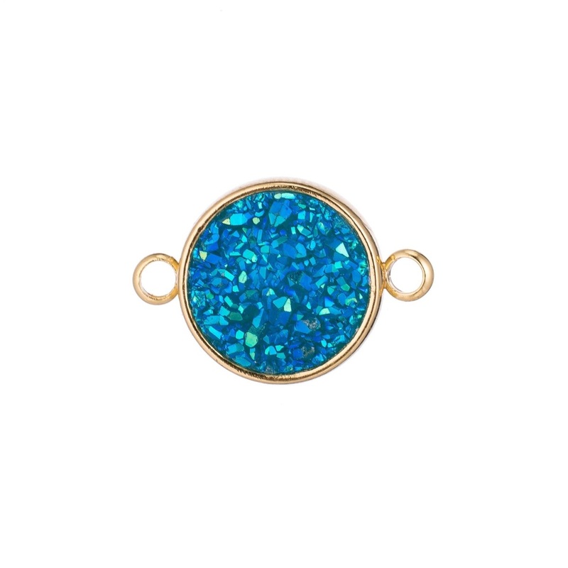 Gold Aqua Blue Round Druzy Drusy Agate Gemstone DIY Dainty Gift Bracelet Charm Bead Connector Double Bail Pendant for Jewelry Making F-400