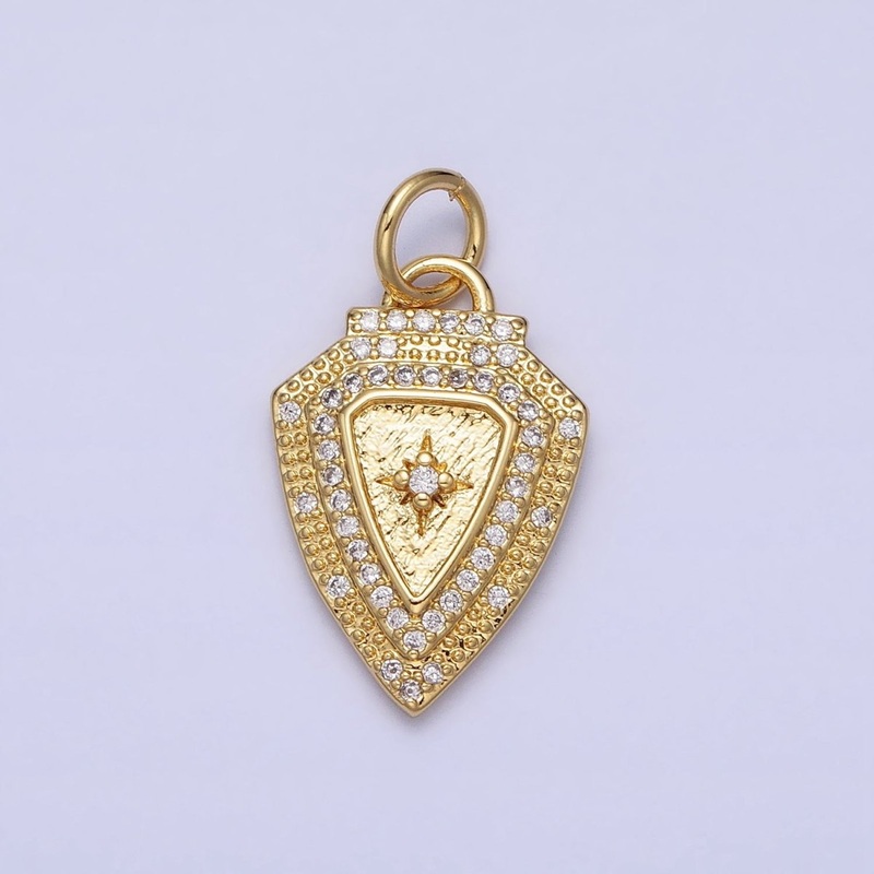 Gold Beaded Clear Micro Paved CZ Celestial North Star Shield Charm | AC374