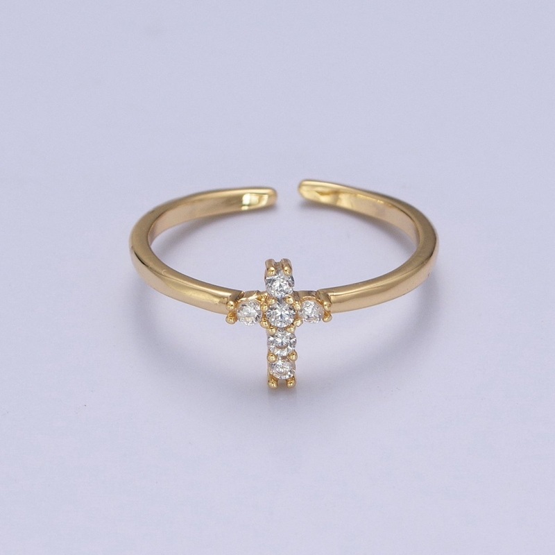 Gold Cross Ring Stacking 14K Gold Filled Ring CZ Dainty Cross Ring O-2140