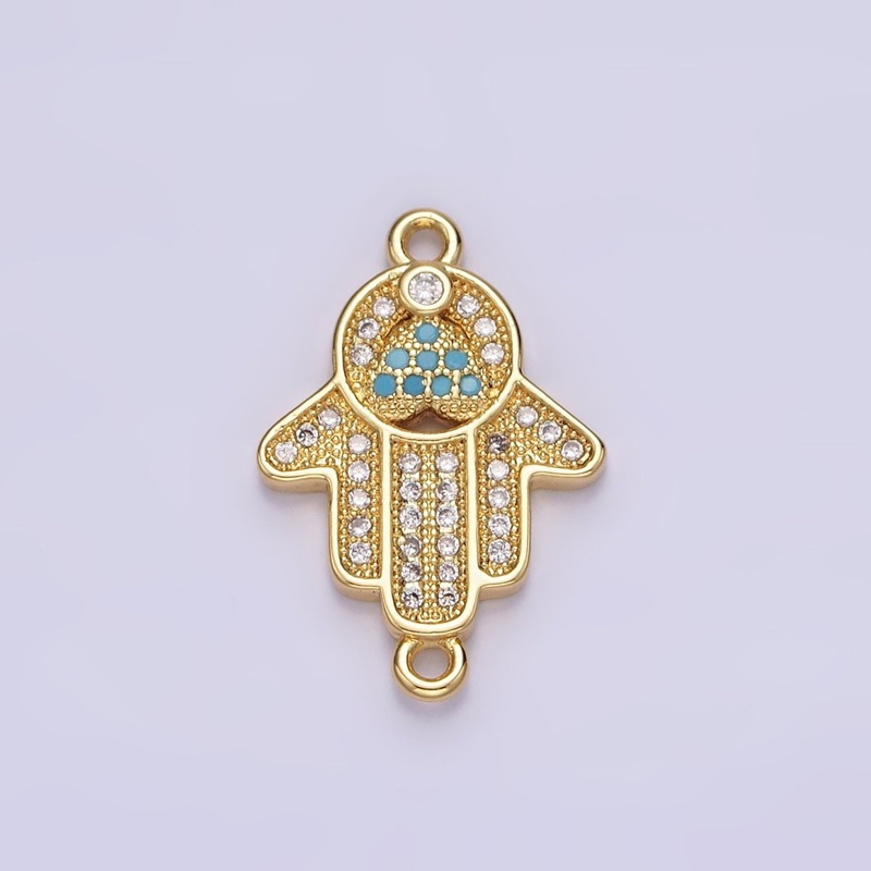 Gold Filled 21mm Turquoise Clear Micro Paved CZ Hamsa Hand Connector G-661