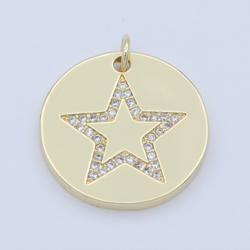 Gold Micro Pave CZ Star Charm, Cubic Galaxy Micro Pave CZ Pendant, Coin Pendant, Celestial Jewelry M-355