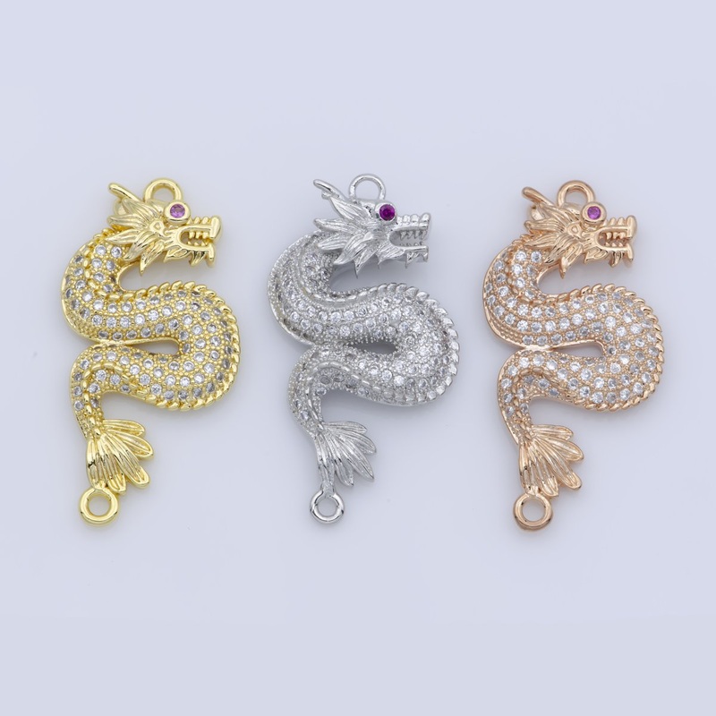 Gold Spirit Mythical Majesty Dragon Chinese Legend Belief DIY Cubic Zirconia Bracelet Charm Bead Finding CONNECTOR For Jewelry Making F-245 Gold
