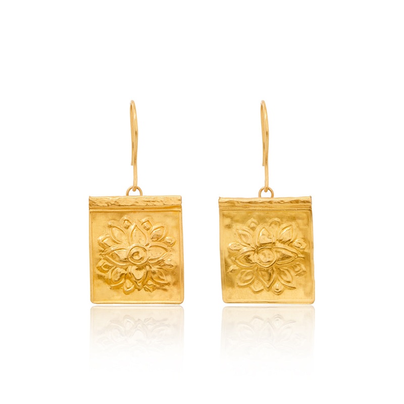 TheGold Stamp Square Lotus Earrings are made in 18k yellow gold.