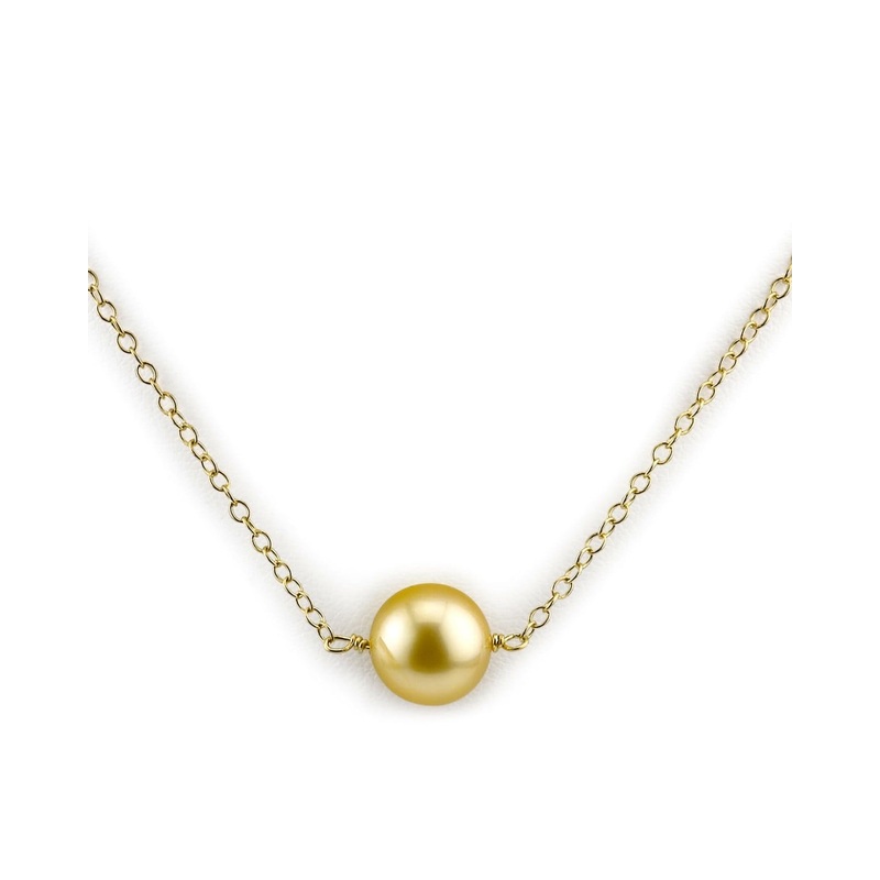 Golden Round Solitaire 14K Pearl Necklace
