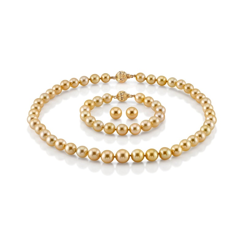 Imagine adorning yourself with an exquisite jewelry set that features rich, golden pearls. The stunning round pearlsranging from 8.0 to 10.0mmare carefully selected for their brilliant luster and natural hues. You’ll appreciate the choice of a 16-inch choker or an 18-inch princess length necklace, perfectly matched with a bracelet and stud earrings. Each piece in this set showcases the luxurious craftsmanship that defines true elegance, making it a perfect addition to your sophisticated lifestyle.