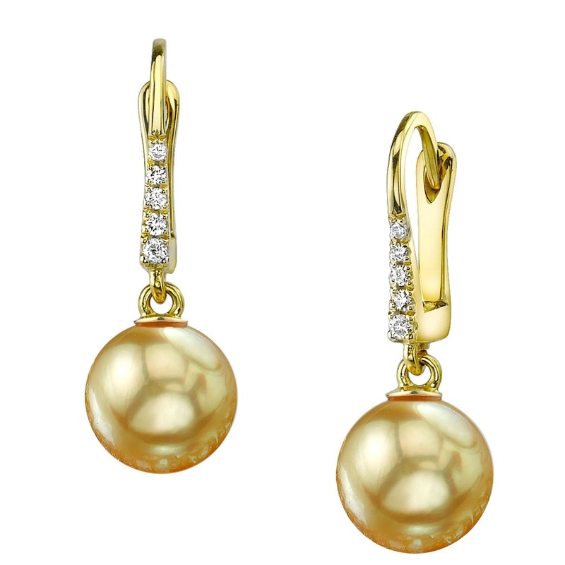These stunning earrings showcase two 9mm Golden South Sea pearls, each carefully selected for their gorgeous luster. You’ll appreciate how they effortlessly catch the light, set against the backdrop of fine 14K gold and accented with SI clarity diamonds. You’ll find these earrings are not just jewelry but a statement piece that complements your sophisticated lifestyle, perfect for a night out in the city or an elegant dinner at your favorite restaurant.