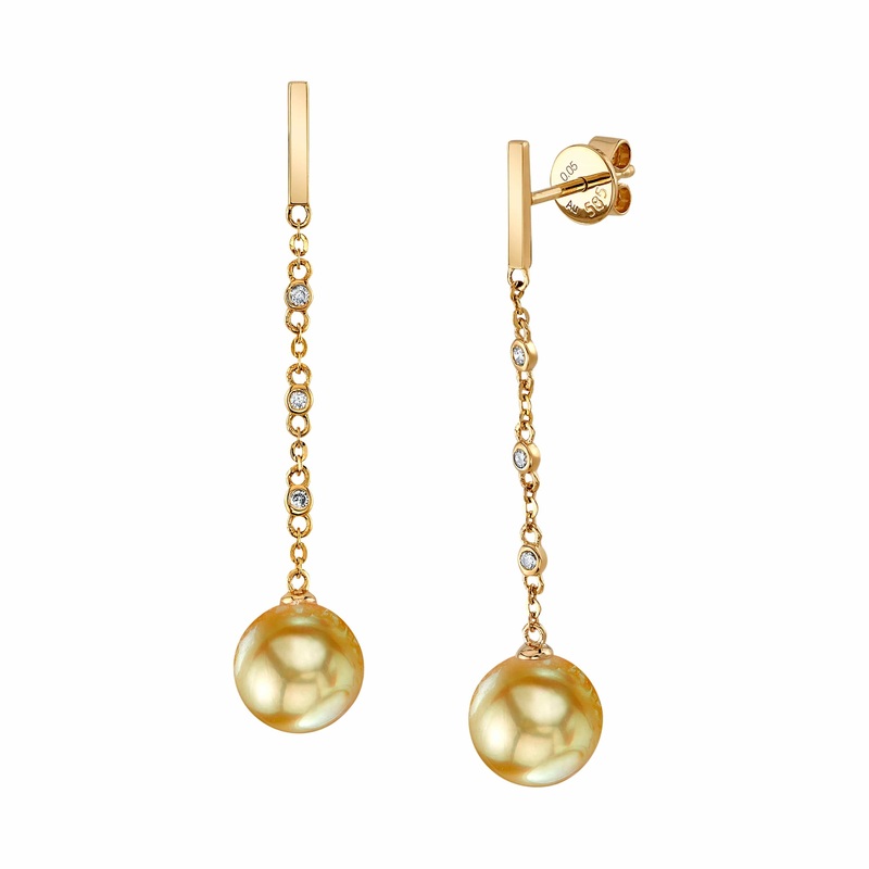 Golden South Sea Pearl & Diamond Flicker Dangle Earrings