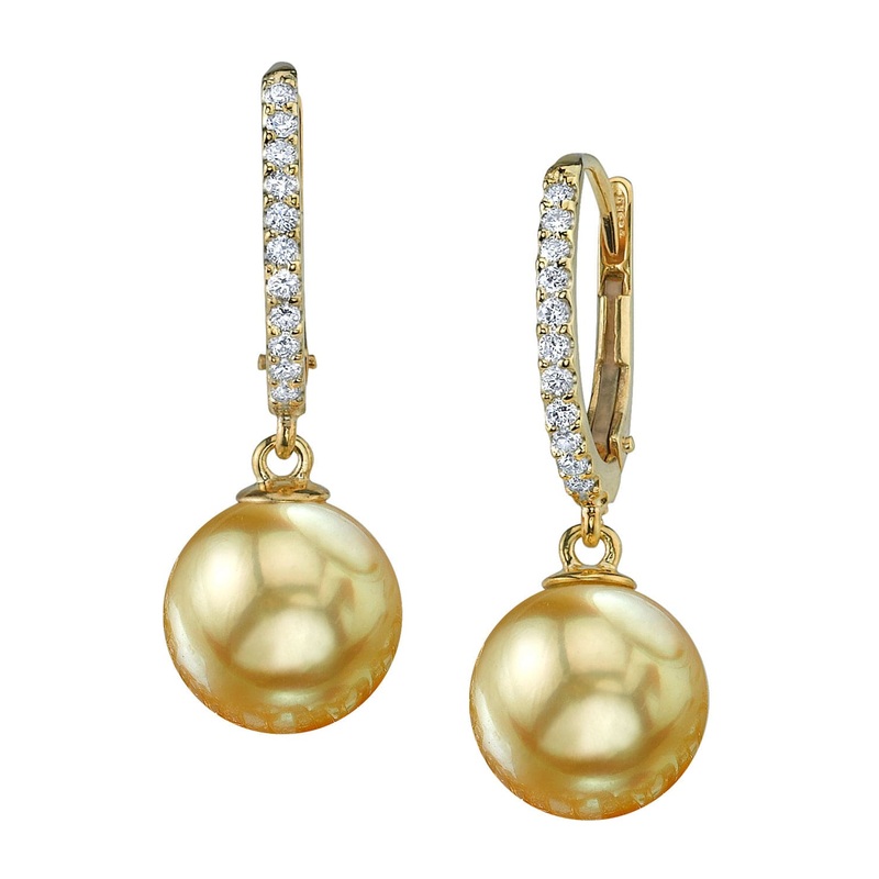 Golden South Sea Pearl & Diamond Metropolis Dangle Earrings