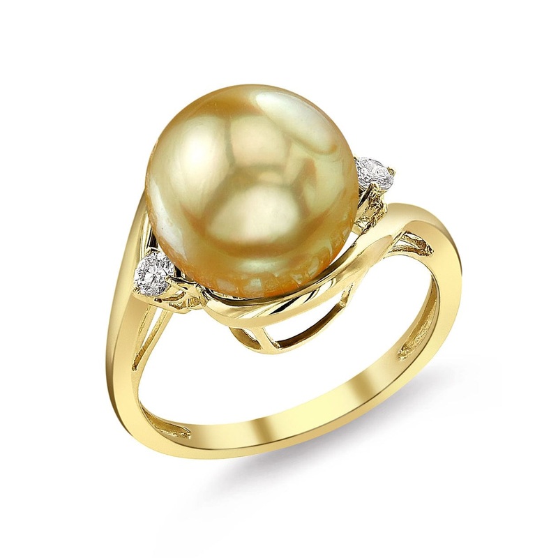 Imagine wearing a ring that combines elegance with a touch of sophistication. This stunning piece showcases a luminous AAA Quality 10.0-11.0mm Golden South Sea pearl, beautifully accented by two exquisite 0.14cts SI1 Quality round-brilliant diamonds. You'l
