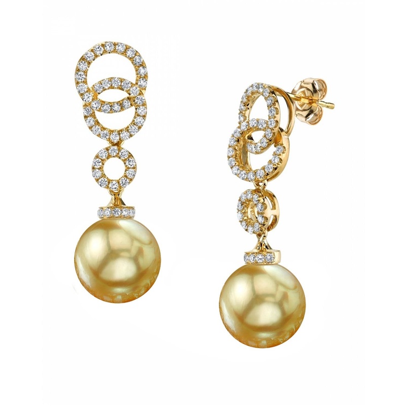 Golden South Sea Pearl & Diamond Stardom Dangle Earrings