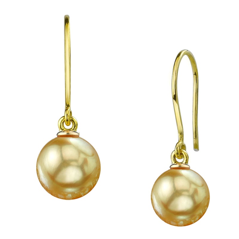 These exquisite earrings showcase two 9mm Golden South Sea pearls, handpicked for their radiant luster. You'll appreciate how the elegant shepherd hooks, crafted in 14K gold, enhance the beauty of the pearls. The design is both classy and contemporary, per
