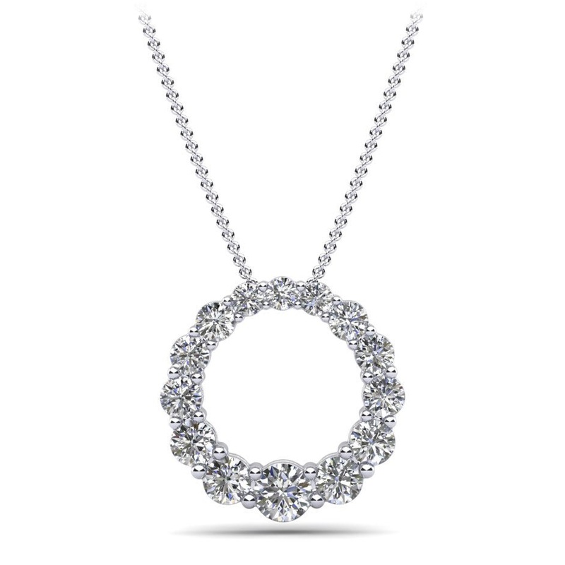 The item exclusively features Lab-Grown Diamonds in FG/VS quality, ensuring premium quality and ethical sourcing. For any inquiries regarding the quality of the stones, please feel free to contact us. This unique circle shape diamond pendant features gradu