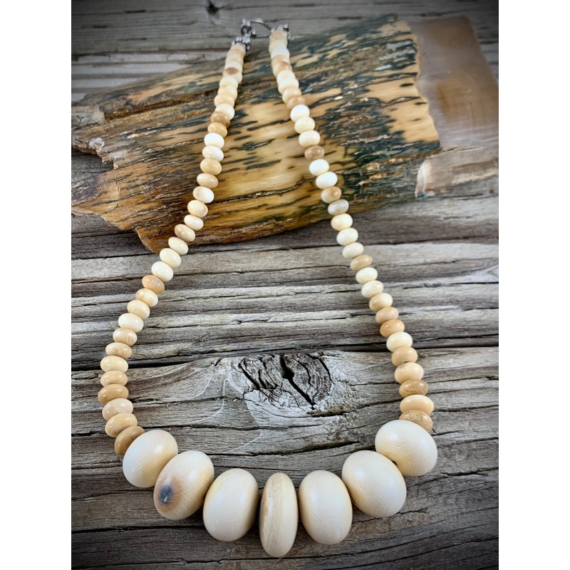 Mammoth Ivory & .925 Sterling Silver claspNecklace Length - 16" Largest bead is approx 18mmInformation card included One of a kind