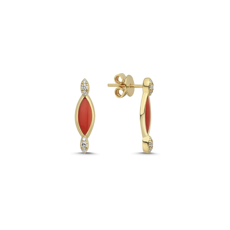 The Grain Studs with Diamond Heads – Red are made from ethically and sustainably sourced 14k gold with white diamonds.