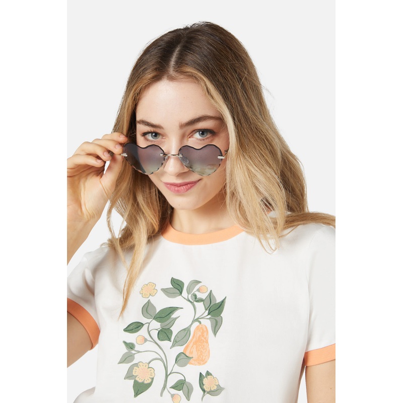 Green Fade Heart Sunglasses – A fun and pretty pair of sunglasses – Heart shaped lenses – Frameless – Silver toned hardware – Green fade effect