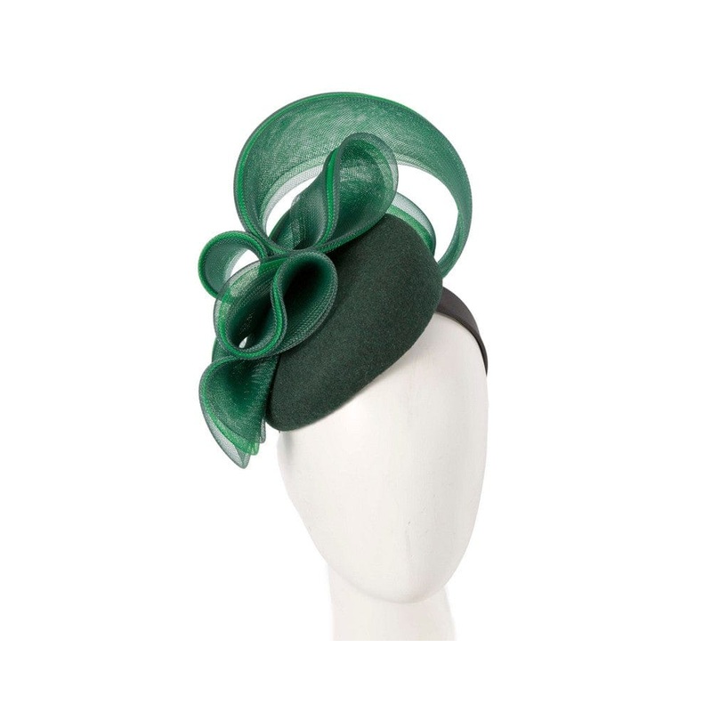 Want to look you best at next race meeting? You can not go past bespoke fascinators by Fillies Collection.Layers of dark green crinoline on the woolen pillbox fascinator Made in Australia Bespoke design by Fillies Collection Comfortable headband