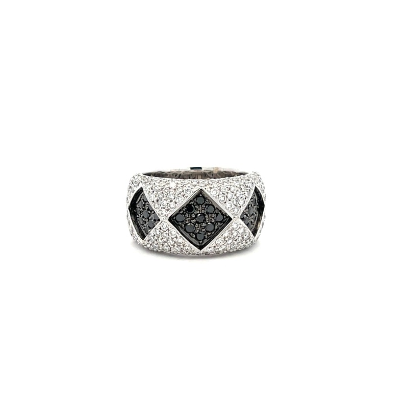 18 karat white gold Gregorio Wide Band containing 0.66 carat total of white diamonds and 0.54 carat total of black diamonds.