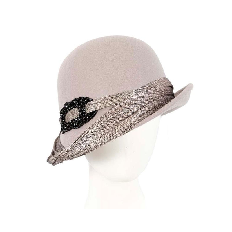 Grey felt draped cloche hat