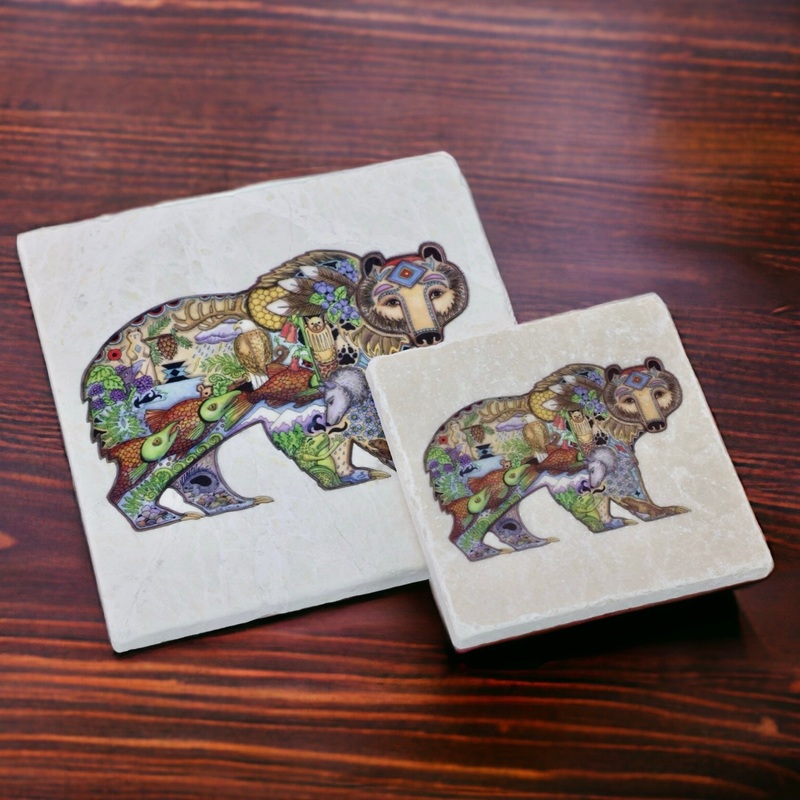 Italian Botticino Marble coasters and trivets with corked back are a natural conversation starter. A lovely piece of functional art.Coaster: 4"x 4" Trivet: 6" x 6"*This marble has imperfections and flaws~ it is the beauty of this natural material. Artist S