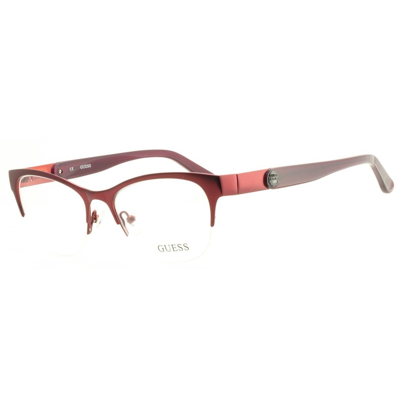 GUESS Half Rim Frames - 100% Authentic - GU 2357 BU Satin burgundy metal frames Gloss burgundy acetate arms with raised Guess logos Precision spring hinges and adjustable nose pads for a comfort fit Brand new - Never been worn Lens Width = 51mm Frame Heigh