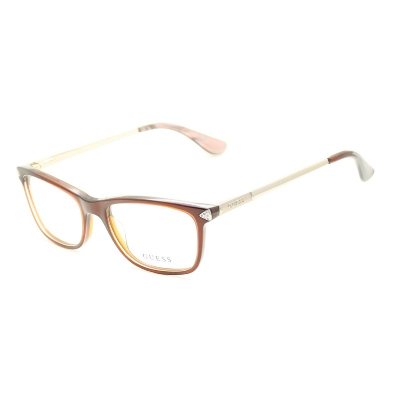 GUESS Full Rim Frames - 100% Authentic - GU 2631-S 069 Genuine Swarovski Crystals Gloss red over brown acetate frames with crystal set corners Polished gold metal sides with Guess logos on satin gold panels Gloss brown over pearl brown acetate arm ends Pre