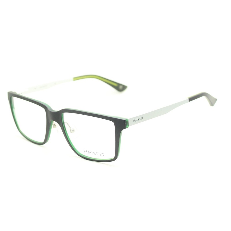 HACKETT Full Rim Frames - 100% Authentic - HEK 1154 074Matte black over crystal green acetate frames and arm endsSatin silver metal arms with Hackett logosPrecision spring hinges and adjustable nose pads for a comfort fitBrand new - Never been wornLens Wid