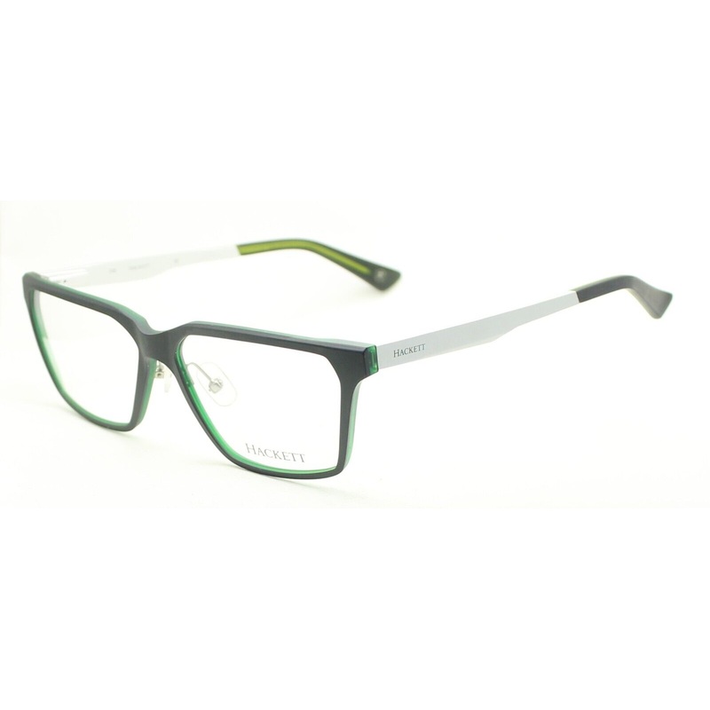 HACKETT Full Rim Frames - 100% Authentic - HEK 1156 074Matte black over crystal green acetate frames and arm endsSatin silver metal arms with Hackett logosPrecision spring hinges and adjustable nose pads for a comfort fitBrand new - Never been wornLens Wid
